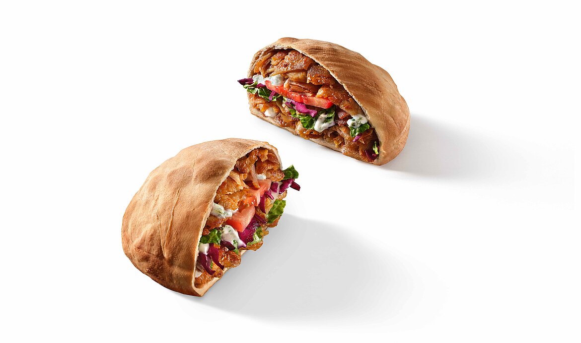 Die Alzarro Dönerworld GmbH hat 2024 eine neue Produktionsstätte in Betrieb genommen und setzt dort für die Herstellung ihres Produkts „Döner für zu Hause“ auf Maschinen von KRONEN. Die automatisierte Verarbeitung von frischen Zutaten ermöglicht eine effiziente und hygienische Produktion des neuartigen “Dönerback”, einer geschlossenen Teigtasche gefüllt mit Hähnchenfleisch, Soße und Gemüse. Dieser wird in verschiedenen Einzelhandelsketten im Kühlregal angeboten und vor dem Verzehr im Backofen aufgebacken.