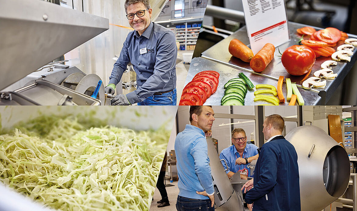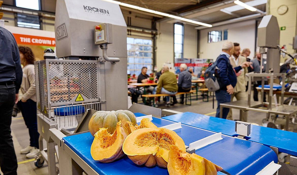 A number of new and well-established solutions were also showcased, for example the CAP 350 cabbage cutting machine, which can also efficiently cut larger cabbage heads, the flexible Tona V cutting machine, the KUJ-Vand KUJ HC-220 cube, strip & slice cutting machines, and the AS 6 and AS 4 apple peeling and slicing machines, as well as the Flex L packaging machine from GKS Packaging. The KRONEN partner iWEIGH additionally presented its innovative Bunker Weighing Belt as a solution for precisely controlling the product flow as well as a standard trolley weighing system. ProMinent, sterilAir, and Citrosol also had partner stands at the event.