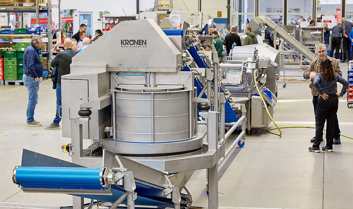 The main focus of the event was live demonstrations of KRONEN machines, including a processing line comprising a GS 10-2 belt cutting machine, a HEWA 3800 HELICAL washing machine, and a K650 drying system, as well as KRONEN’s innovative avocado robot solution.