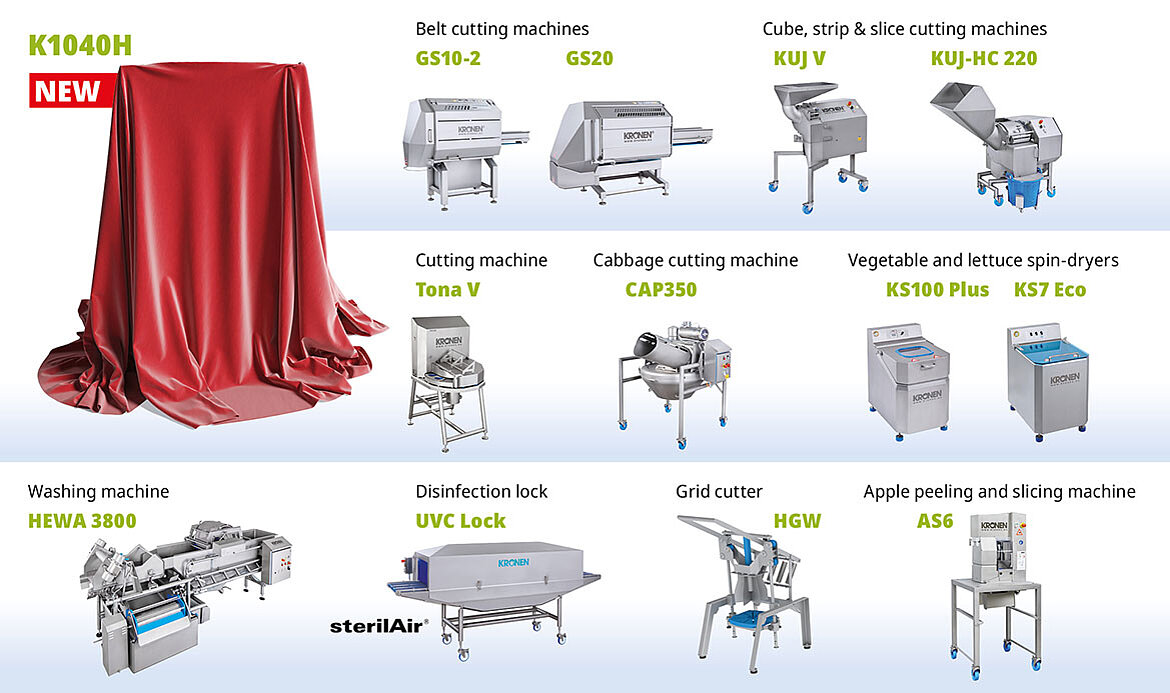 Our stand presentation will focus on our well-established and new machines for the industrial processing of fruit, vegetables, salad leaves, and more. Our international KRONEN team will demonstrate a wide variety of applications live at the stand – from standalone machines to components for integrated processing line solutions.