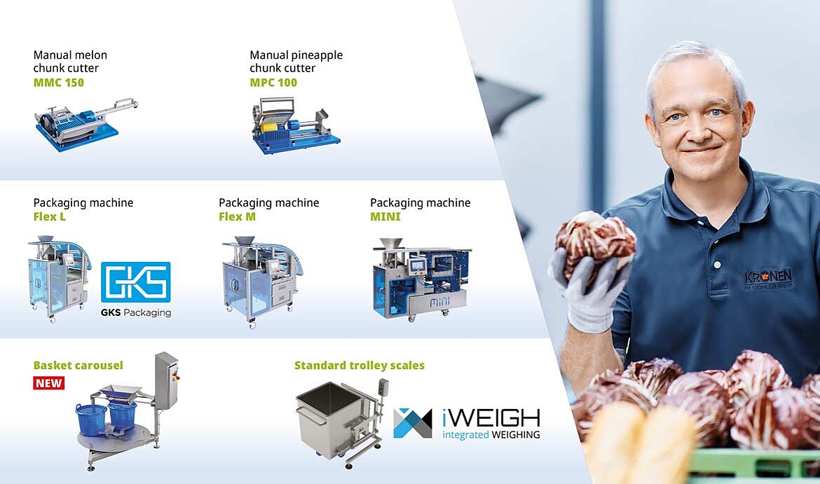 This range of products will be complemented by weighing solutions by the company iWEIGH, which will be represented at the KRONEN stand for the first time at the trade show. The KRONEN stand will present two iWEIGH solutions, namely its new standard Eurobin trolley scales for combined weighing and packaging processes and its tabletop scales for precise portioning.