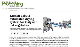 Press article: KRONEN debuts automated drying system for leafy and cut vegetables