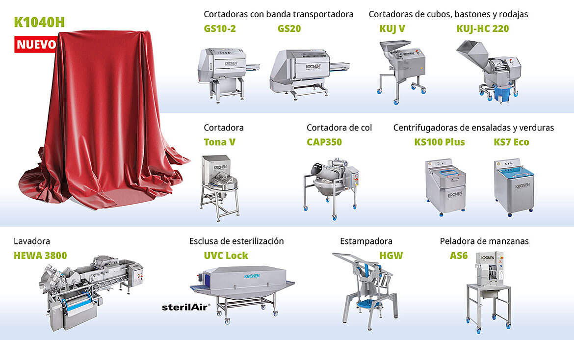 Nuestra presentación en la feria se centrará en máquinas probadas en la práctica y en nuevas para el procesado industrial de lechugas, hortalizas, frutas y mucho más. Nuestro equipo internacional de KRONEN realizará demostraciones in situ de una amplia gama de aplicaciones, desde máquinas individuales hasta componentes para soluciones de líneas integradas.
