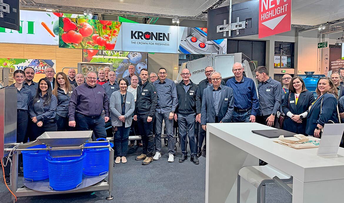 Gracias al gran interés internacional, podemos hacer balance de una exitosa participación en la feria Fruit Logistica 2026 de Berlín. KRONEN presentó un estreno mundial y numerosas soluciones innovadoras y consolidadas para el procesamiento industrial de lechugas, hortalizas, frutas y otros alimentos frescos.