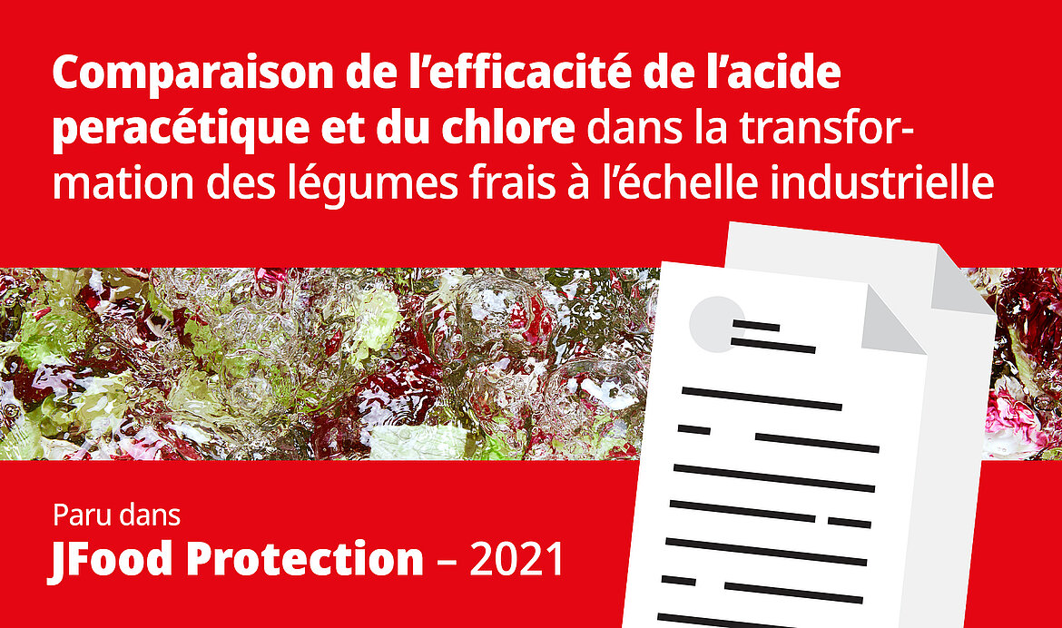 Cette étude compare l’efficacité désinfectante du chlore et de l’acide peracétique (APA) dans l’eau de lavage des fraîches découpes de légumes. Les résultats démontrent que l’APA, notamment la solution Citrocide® PLUS, représente une alternative efficace aux désinfectants à base de chlore pour le secteur des fraîches découpes. De plus, l’utilisation de l’APA génère nettement moins de sous-produits nocifs dans l’eau de lavage. L’efficacité est maintenue même en présence d’une forte charge organique, garantissant ainsi la sécurité alimentaire.